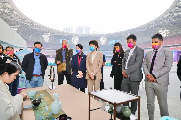 值得一提的是,此次活动还精心设置了宋韵点茶茶艺表演环节,邀请外国友人现场品茗西湖龙井、九曲红梅等杭州特色茶,品尝杭州特色茶点,沉浸式体验杭州宋韵文化。