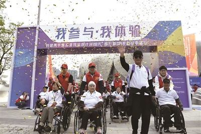 和毅行活动一起的,还有亚残运会竞赛项目体验区和残疾人创业就业展示区。竞赛体验区设有最佳投手、硬地滚球、神枪手、草地掷球等项目,通过趣味互动和切身感受,让残疾人朋友深入体验和融入杭州亚(残)运会,在竞技中锻炼毅力,在合作中增进友谊,在比赛中发现快乐,在胜利中拥抱幸福,在家人和志愿者的陪伴下,享受生活的美好,同时展现出残疾人朋友自立自强的拼搏精神。
