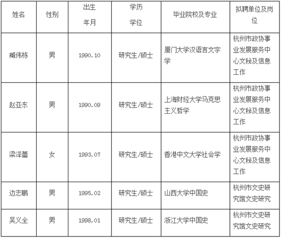 根据《事业单位人事管理条例》(国务院令652号)、杭州市《关于贯彻落实国家人事部〈事业单位公开招聘人员暂行规定〉的实施办法》精神和《2020年度市365提款注单审核_365bet娱乐平台官网_mobile bt365体育投注办公厅下属事业单位公开招聘高层次人才工作方案》规定的程序,经公开报名、笔试、面试、考核和体检,确定下列拟聘用人员,现公示如下: